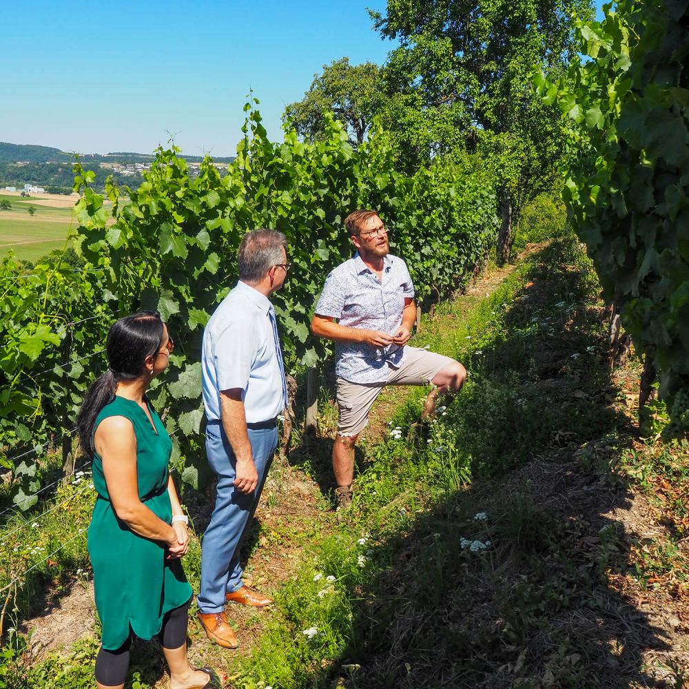 Die Arbeiten im Weinberg werden von arbeitslosen Hilfeempfänger:innen im Rahmen unserer Arbeitsgelegenheiten durchgeführt. Aus unterschiedlichsten Gründen können diese Menschen nicht direkt auf dem Arbeitsmarkt vermittelt werden.