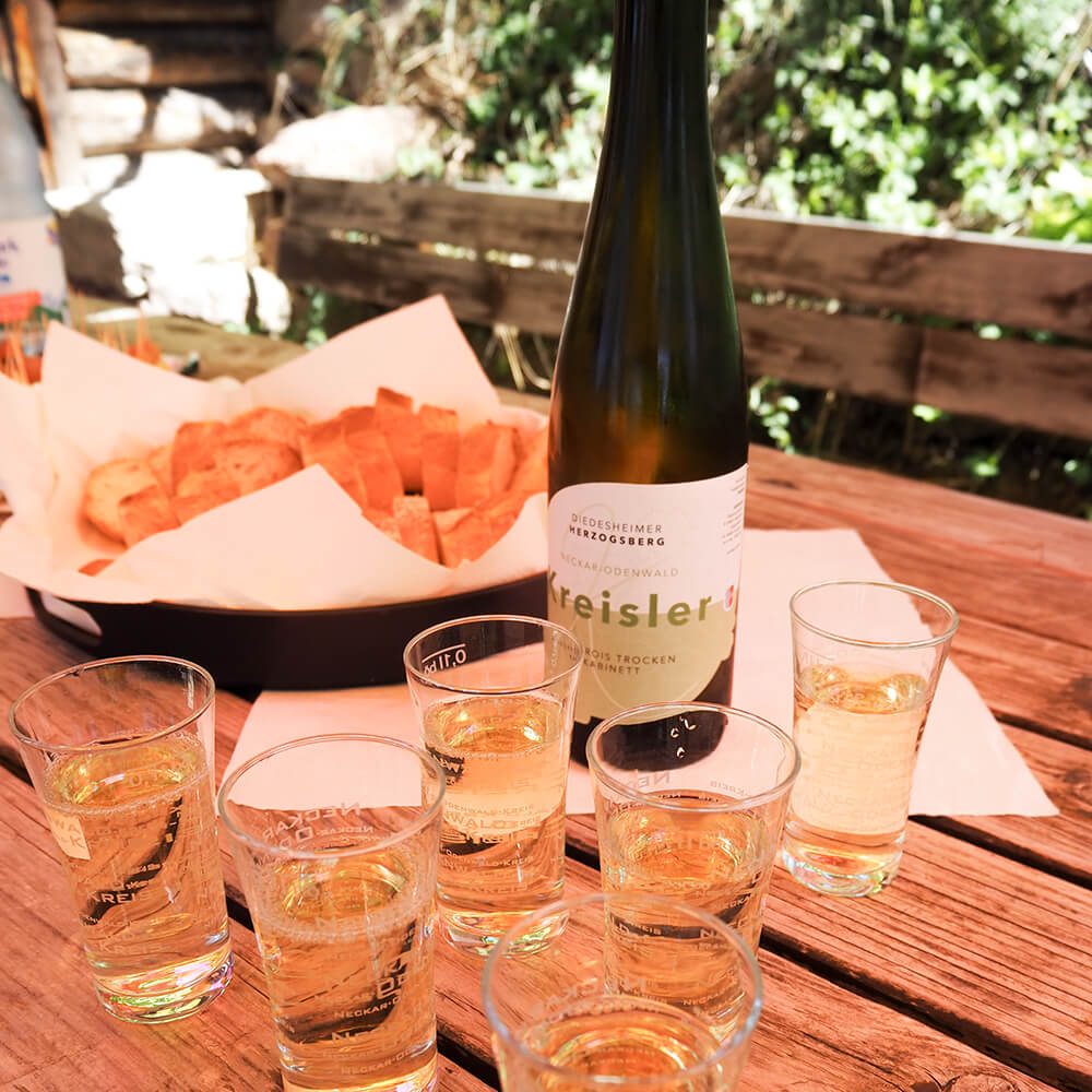 Unser Weinberg liegt in Mosbach-Diedesheim inmitten des Landschaftsschutzgebietes „Unterer Schreckberg“. Auf einer Rebfläche von 23,5 Ar wird dort die Weißweinsorte Auxerrois angebaut. In ökologischen Fragen werden wir vom Naturschutzbund Mosbach beraten. So haben wir z. B. Nistkästen aufgehängt, um Vogelarten, die Weinbergschädlinge als willkommene Futterquelle annehmen, einen Brutplatz zu bieten.